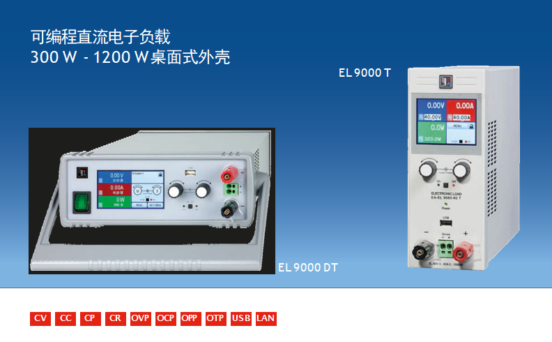 | EL 9000 DT | 400 W - 1200 W | 80 - 750 V | 5 - 60 A | 有 | 无 (标配USB, Ethernet, Analog) |