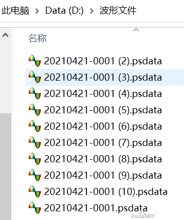 然后开始捕获波形,如图6所示,一旦缓冲区满(图6这里最大是64个缓冲区),软件就会自动保存所有缓冲区波形。这里已经采集并保存第五次信号了,在刚刚设置的文件夹位置也可以查看到所有波形文件(图7)。