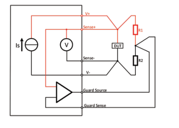 4线制电阻测量适用于测量低阻值电阻,N2600系列数字源表具备自动校正功能,能够消除引线影响。