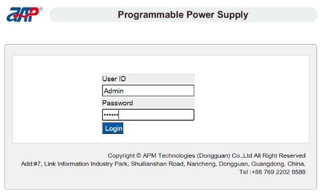 APM交流电源的操作方式与上述的中功率直流电源一样,无需安装软件,在浏览器内输入电源的IP地址就可以远程,满足电源的基本设置与监控。