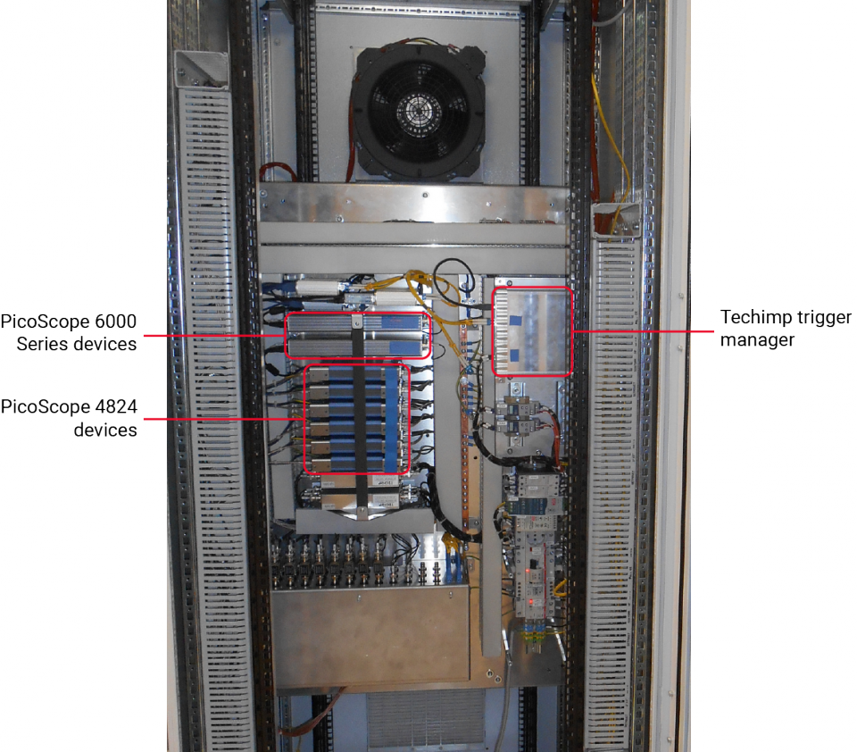 由于PicoScope示波器的性能,可以测量以下每个参数,利用PicoScope 6000系列在500 MHz下采样三个通道的能力,或者PicoScope 4824示波器在7个通道上以1 MHz采样加触发的能力。PicoScope是一个完美的解决方案,结合了紧凑的尺寸,精度和带宽以及用户友好性。这些仪器于2013年安装在类似的系统上,并且没有任何漂移,可以提供完美的测量重复性。相电压瞬变(0至693 kV,DC至1 MHz; PicoScope 4824)使用变电站中的高压电阻 - 电容(RC)分压器进行电压测量。采样率高,仅在系统触发时才会发生。相电压振荡(0至693 kV,DC至10 kHz; PicoScope 4824)硬件/软件总和,以便在特定线路上提供电压。采样率低,连续发生。在一段时间内以RMS电压值的形式输出。相每相的电流测量值(0至4 kA,0.2 Hz至2 kHz; PicoScope 4824)使用变电站中的高压电流互感器(HVCT)进行电流测量。采样率高,仅在系统触发时才会发生。架空线电流振荡,(0至4 kA 0.2 Hz至2 kHz; PicoScope 4824)汇流条中各种输入和输出电流的硬件/软件总和,以便通过特定线路提供电流。采样率低,连续发生。每根电缆中的电流(0至22 kA,0.2 Hz至1 MHz; PicoScope 4824)使用安装在每根电缆终端的Rogowski线圈进行电流测量。采样率高,仅在系统触发时才会发生。电缆屏蔽电流(0至22 kA,0.2 Hz至1 MHz; PicoScope 4824)电缆屏蔽电流通过每根电缆的外护套,使用安装在电缆护套接地上的Rogowski线圈测量。采样率高,仅在系统触发时才会发生。每根电缆的电流振荡(0至2 kA,0.2 Hz至2 kHz; PicoScope 4824)采样率低的电流测量。收购不断发生。在一段时间内以RMS电流值的形式输出。端接中的局部放电(0至1000 pC,500 MHz; PicoScope 6000系列)使用终端内部的嵌入式传感器测量架空线和地下电缆之间连接处终端的局部放电。避雷器电流(120 kA,1 Hz至5 Hz; PicoScope 4824)避雷器电流通过每个避雷器的接地点,使用安装在避雷器接地上的Rogowski线圈测量。采样率高,仅在系统触发时才会发生。避雷器漏电流(12 mA,0.1至650 Hz; PicoScope 4824)避雷器泄漏电流通过每个避雷器的接地点,使用安装在避雷器接地上的Rogowski线圈测量。采样率高,仅在系统触发时才会发生。每个联合接地屏幕的电压(DC至10 kV DC至1 MHz; PicoScope 4824)使用安装在每个链接盒中的分压器(即连接高压电缆屏幕的盒子)进行电压测量。采样率高,仅在系统触发时才会发生。通过每个联合接地屏幕的电流(0到22 kA,0.2 Hz到1 MHz; PicoScope 4824)使用安装在高压电缆屏幕的每个交叉点上的Rogowski线圈进行电流测量。采样率高,仅在系统触发时才会发生。接头部分放电(0至1000 pC,500 MHz; PicoScope 6000系列)使用接头托架内接头内的嵌入式传感器测量电缆接头中的局部放电。
