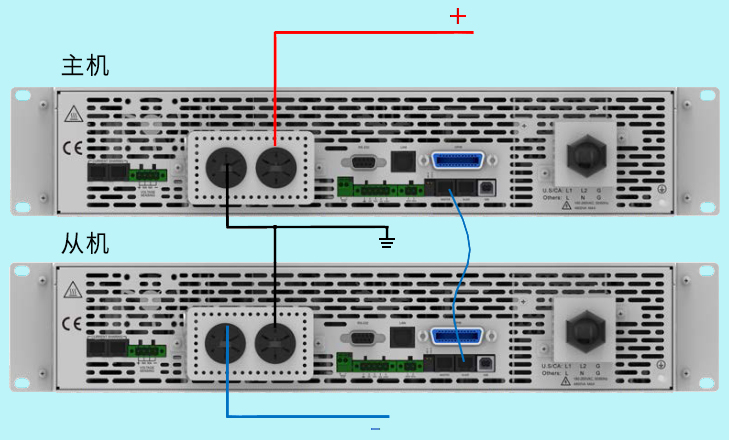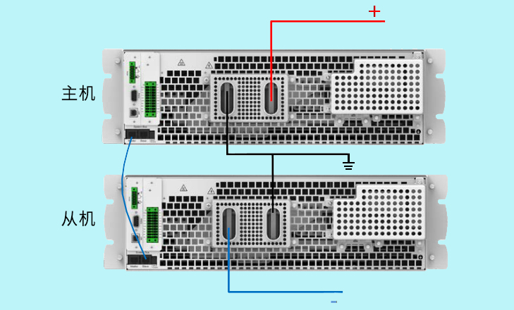 这种应用方式需要两台电源建立关系来达到输出正、负压的需求,外部电路连接方便、快捷,内部建立主从关系即可。