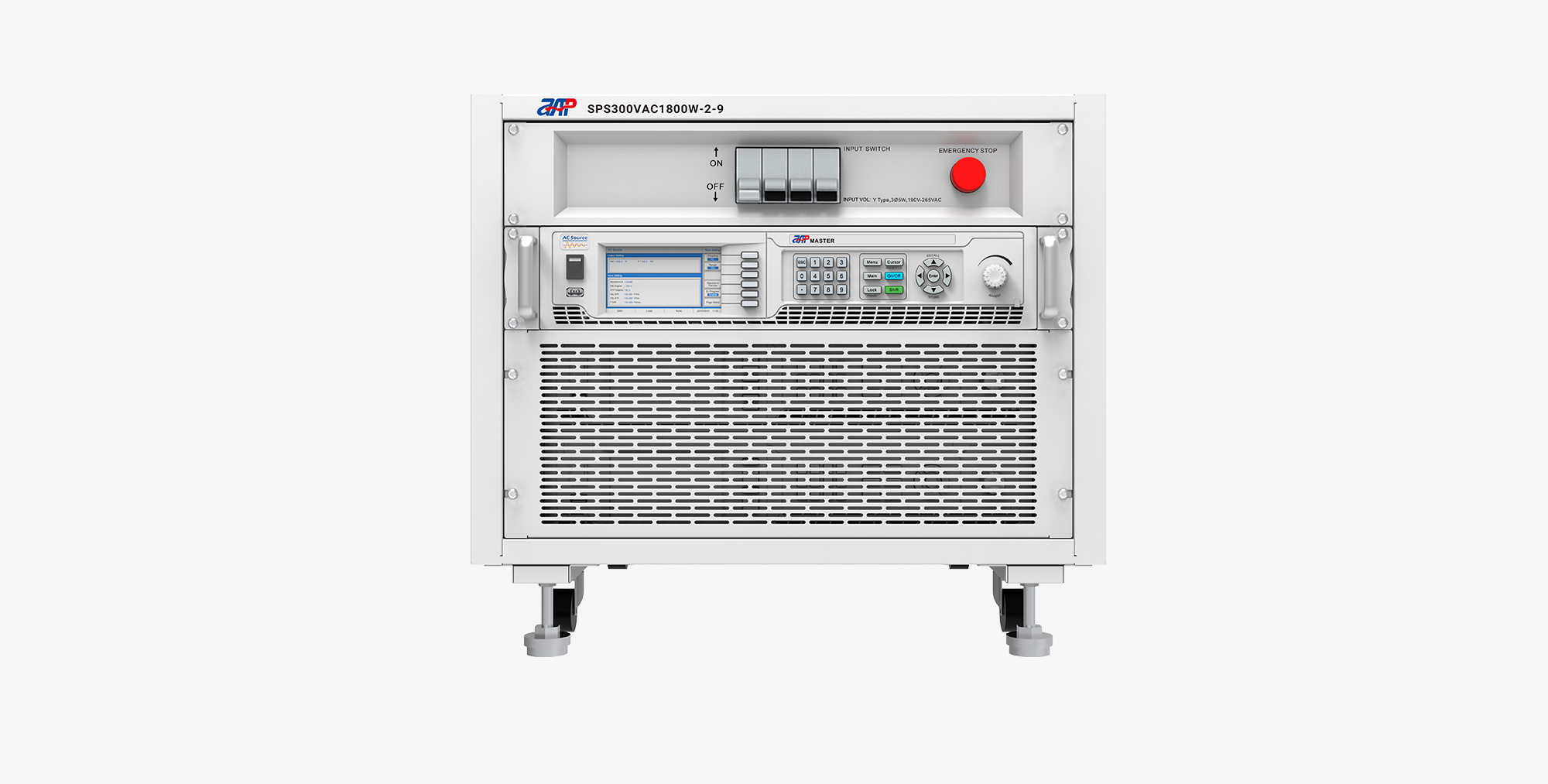 | SPS300VAC4500W-2-9 | 150V/300V | 37.26A/18.63A | 4500VA | RS232/RS485/USB | 15~1000Hz | 9U |